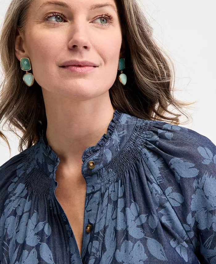 Women’s Floral Chambray 3/4-Sleeve Tiered Dress, Exclusively at Macy’s