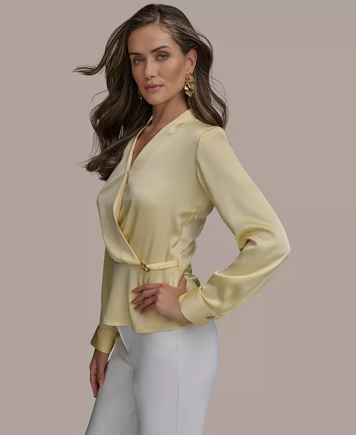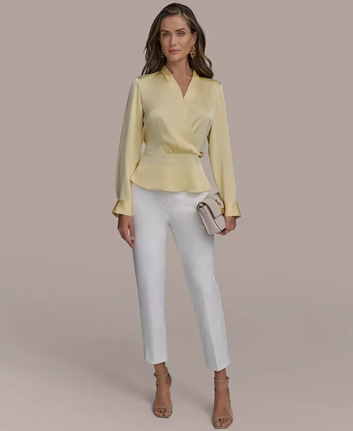 Women’s Hardware-Trim Faux-Wrap Blouse