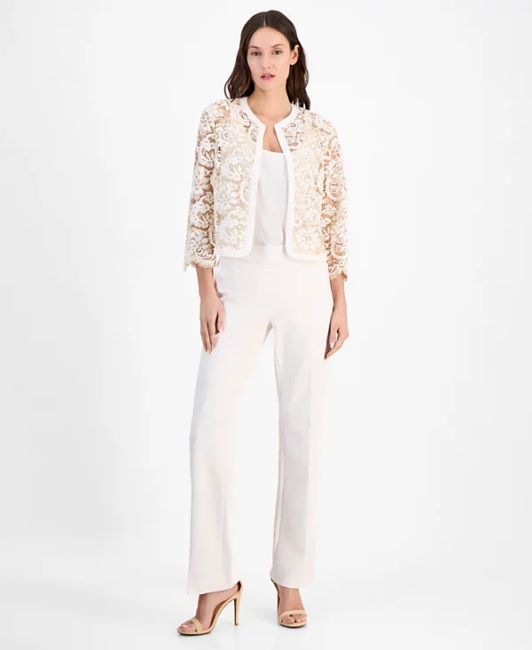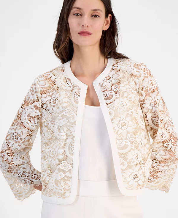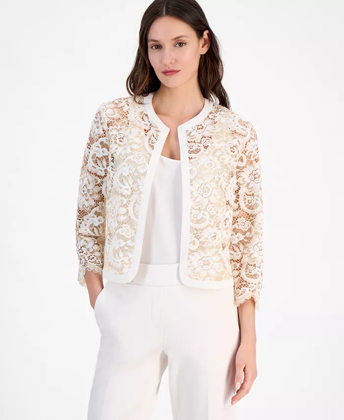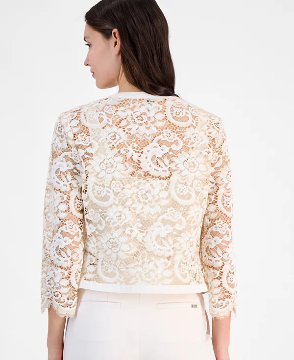 Women’s Lace Open-Front 3/4-Sleeve Jacket