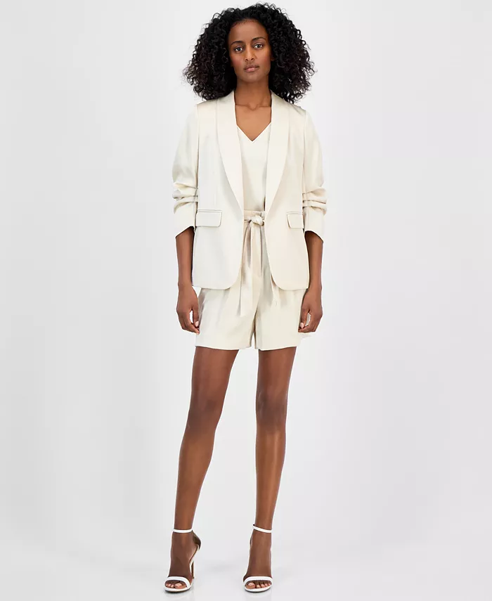 Women’s Open-Front Scrunch-Sleeve Blazer