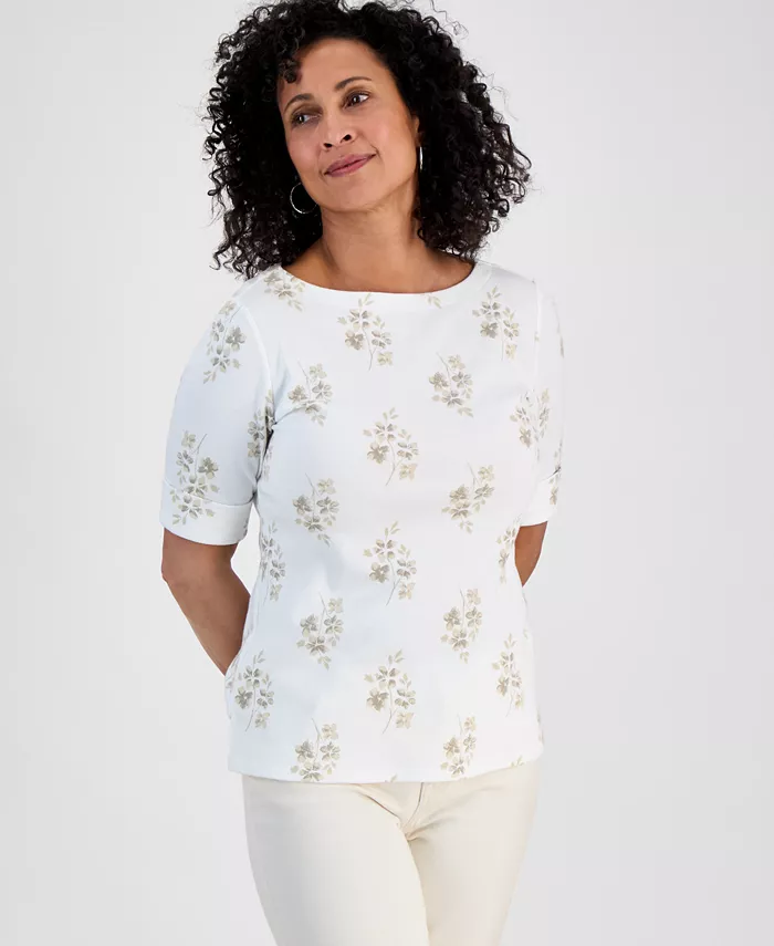 Women’s Printed Boat-Neck Elbow Sleeve Top, Exclusively at Macy’s