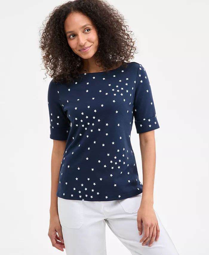 Women’s Printed Boat-Neck Elbow-Sleeve Top, Exclusively at Macy’s