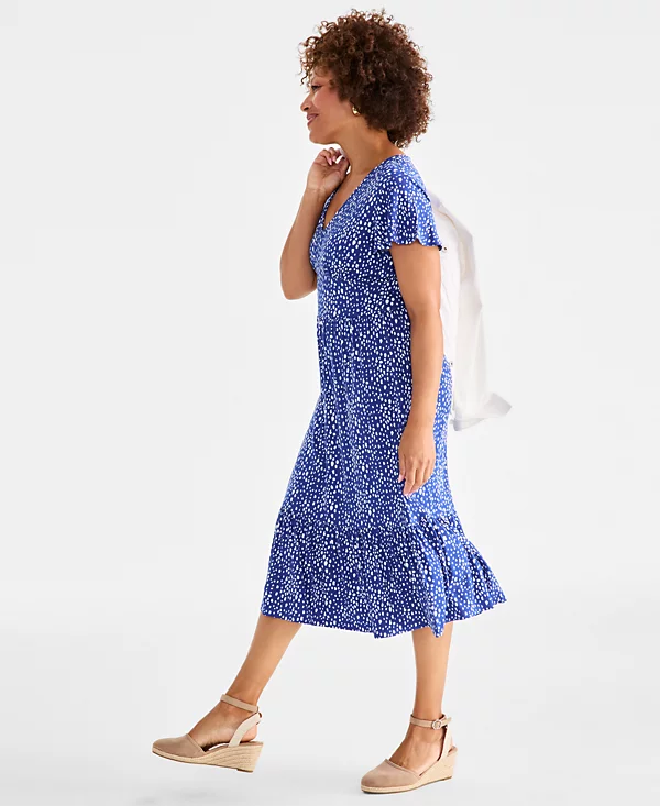 Women’s Printed Flutter-Sleeve Knit Midi Dress, Exclusively at Macy’s