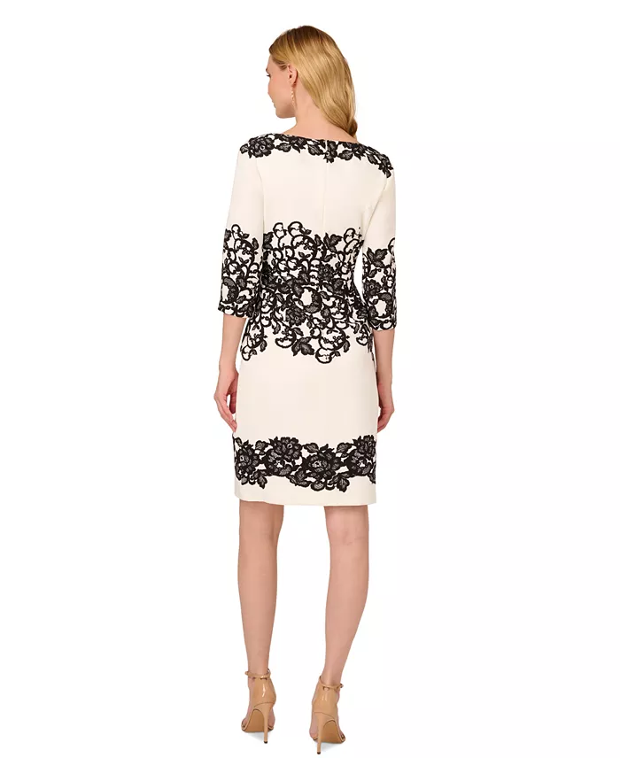 Women’s Scroll Lace Print 3/4-Sleeve Sheath Dress